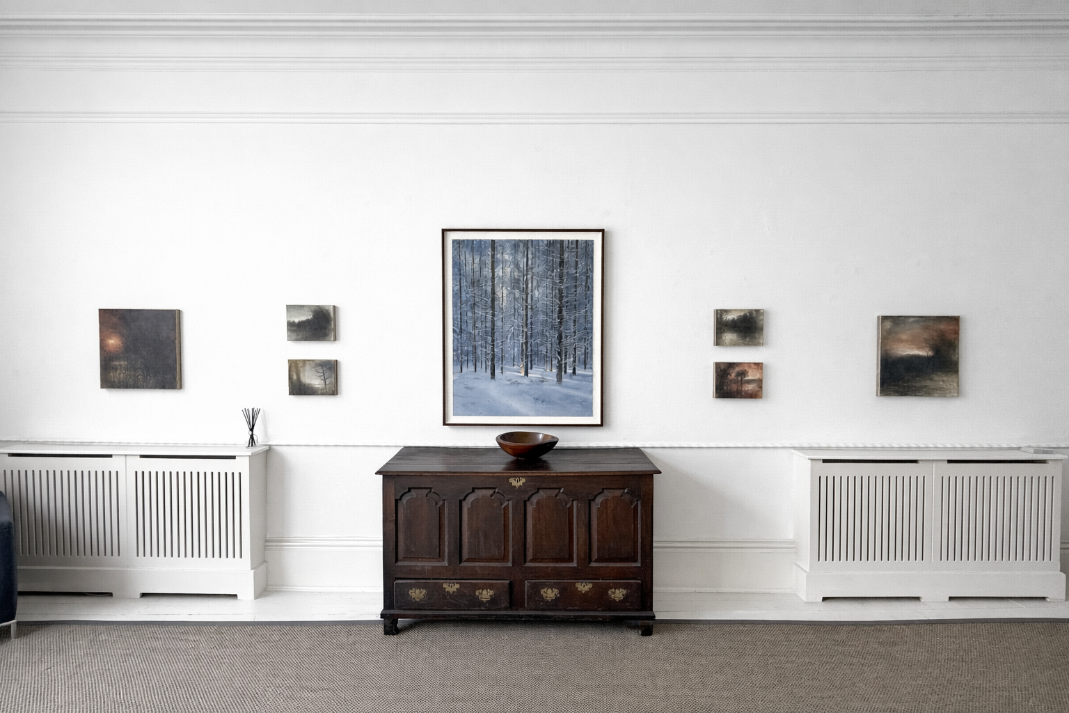 Conversely, Magnus Petersson takes his inspiration from his immediate surroundings, living for much of the year amid the vast forests that swathe Sweden and his summers overlooking the eastern Baltic. His chosen medium is watercolour and he displays an extraordinary facility to capture the unique local variations of light across all seasons; in this, he may clearly be seen as following in the rich roster of Scandinavian artists – not least perhaps the great Harald Sohlberg - in celebrating that inimitable landscape.