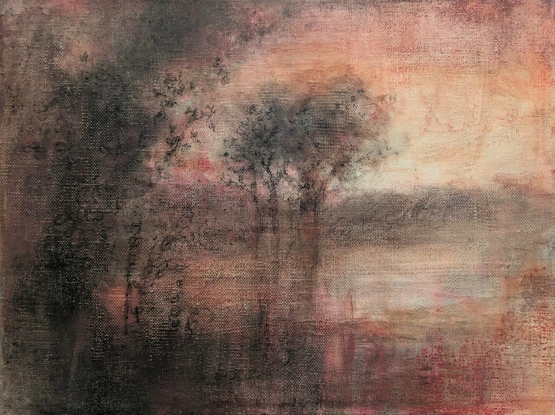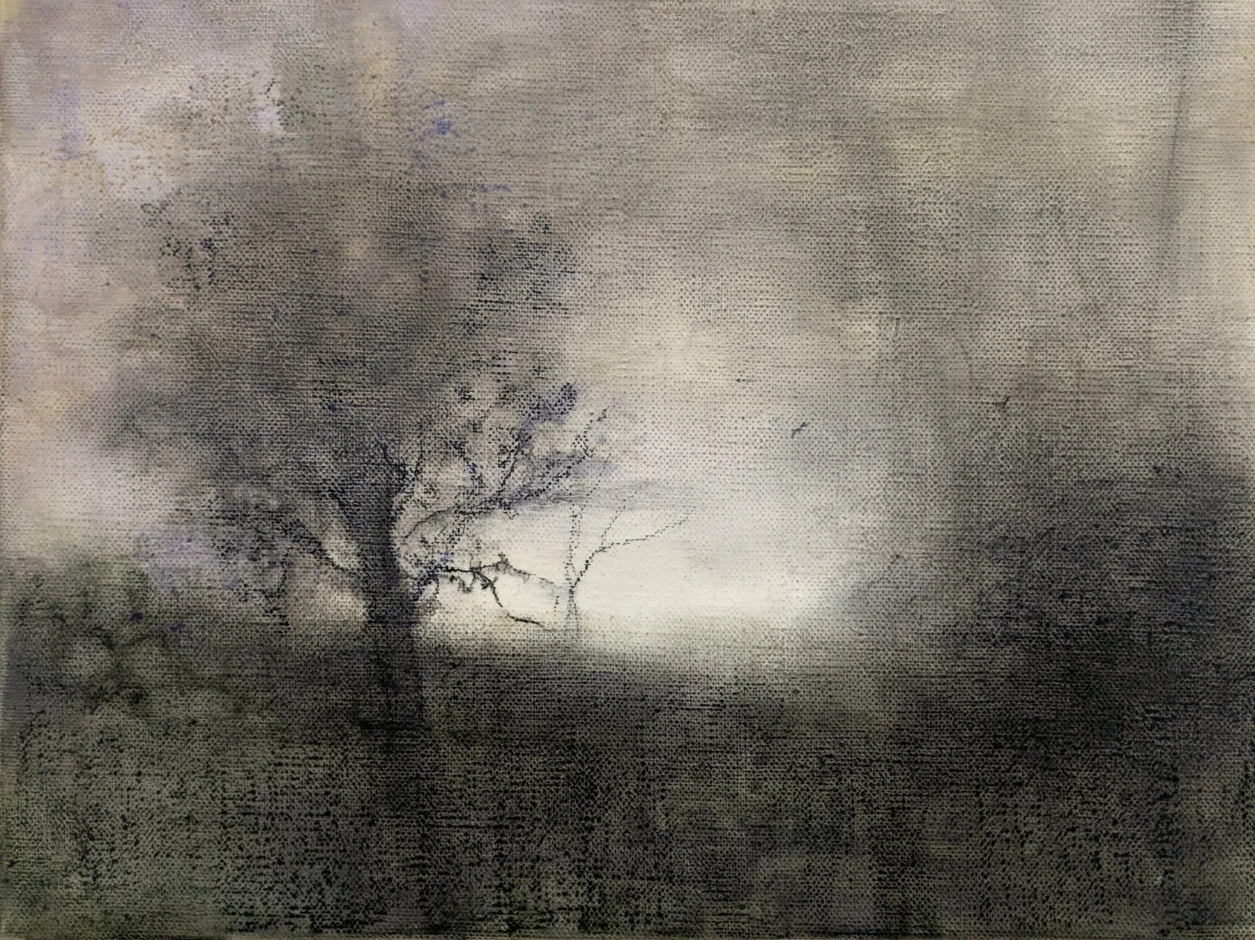 Charcoal, pastel and acrylic on linen; 23 x 30 cm